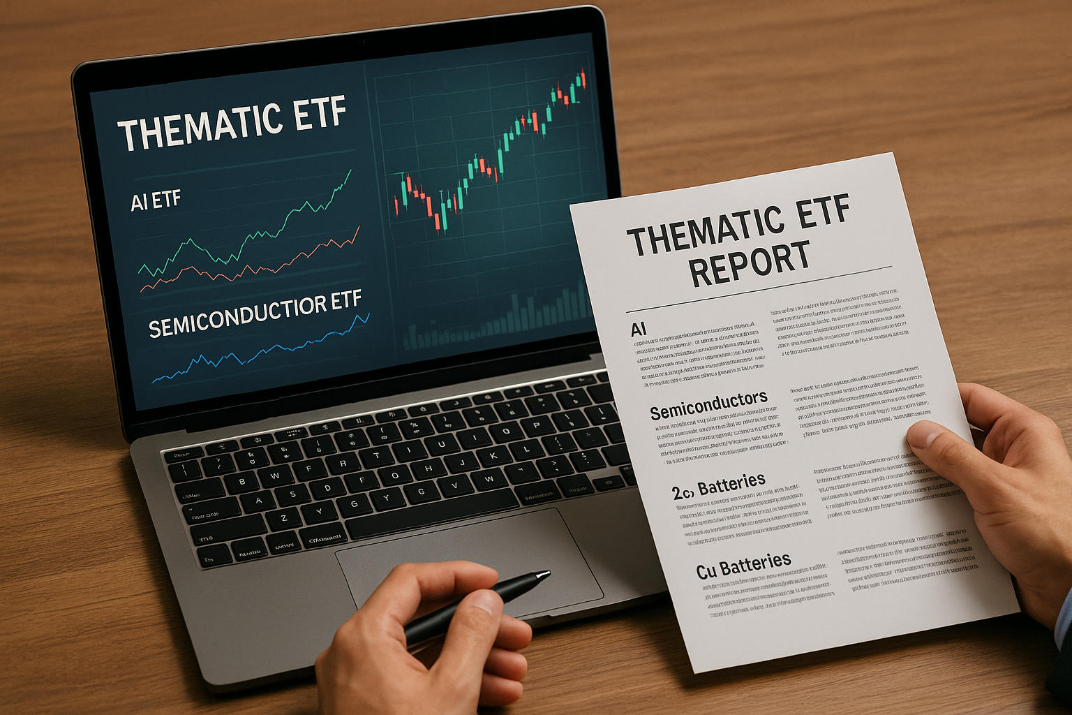 테마형 ETF는 AI, 2차전지, 반도체, 로봇 등 미래 산업 중심의 집중 투자 상품으로, 장기 성장 가능성이 높습니다.